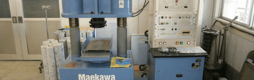 出荷前の生コンクリートから試料を採取し、強度やスランプなどの数値を測定。